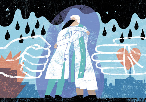 Prester får høre det ingen andre får høre. De ser den delen av livet som vi ikke kan, vil eller har tid til å se. Mens helsepersonell skal ta ansvar for og hjelpe pasienten, trenger en prest kun å vise omsorgsfullt nærvær og lose folk gjennom. Helsepersonell må slåss, mot systemet, mot døden, mot fortvilelsen. Presten er en sjelesørger, hans oppgave er å gjøre prosessen god. Harde endepunkter er en ting, men hvordan man bruker tiden sin frem til da, er en helt annen.