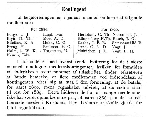 (...) Summa summarum: af 54 afdøde læger har kun 1 tjent sig velstand, altsaa 1,6 %. Der er 500 læger i hele Norges land; man behøver vist ikke de ti fingre for at tælle dem, som kan rolig gaa bort fra sin familie, og det saa meget mindre som der i de samme 10 aar er 5 læger, som faar understøttelse paa grund af sygdom eller alderdom. Nu kommer der nok en forværrende omstændighed til, nemlig de medicinske studenters store antal for tiden. Faa udenbys læger har i grunden noget videre begreb om dette; men de burde have været tilstede ved de siste forelæsninger for doktorgraden. Det store anatomiske læseværelse var saa opfyldt af studenter, at der ikke var plads til at sidde, og hele gulvet stod pakkende fuldt, og dette var væsentlig dog kun dem, som læser til anden eller tredje afdeling; de fleste af dem til første afdeling var ikke tilstede. Det er ikke lystige udsigter, som staar for den kommende slegt. (...)
