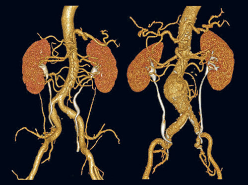 Røyking øker risikoen for abdominale aortaaneurismer. I en musemodell for utvikling av aortaaneurismer ble kontrollmus og mus som manglet en form av den AMP-avhengige proteinkinasen gitt nikotininjeksjoner. Hos begge gruppene var det økt oksygenradikaldanning og inflammasjon som følge av nikotininfusjonen, men bare kontrollmusene utviklet aneurismer (1) . AMP-kinasen var viktig for genuttrykk av matriksmetalloproteinaser, proteiner som bryter ned karveggens bindevevsproteiner. Kinasen og proteiner nedstrøms for denne hadde også økt aktivitet i vevsprøver fra aortaaneurismer hos pasienter samt i blodprøver fra friske røykere sammenliknet med kontrollpersoner.