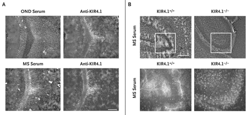 I en ny studie identifiserte forskere et spesifikt IgG-antistoff i serum rettet mot KIR4.1, som er en kaliumkanal i cellemembranen (1) . Blant 397 pasienter med multippel sklerose ble anti-KIR.1 IgG påvist hos 47 %. Blant pasienter med andre nevrologiske sykdommer (n = 329) og friske personer (n = 59) var antistoffet til stede hos henholdsvis 0,9 % og 0 %. Anti-KIR4.1 IgG har nevropatologiske effekter når det ble injiserert inn i musehjerner.