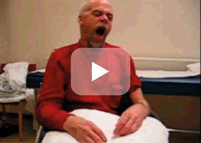 Gjesping er smittsomt, men sjelden uttrykk for sykdom. For noen år siden hadde jeg en 49 år gammel pasient med venstresidig hemiplegi som jeg fikk til å gjespe (video). Jeg lar John Abercrombie (1780 – 1844) beskrive ham: «I had some time ago under my care, a man affected with hemiplegia of the left side, the palsy complete, without the least attempt at motion, except…every time he yawned the paralytic arm raised up…» (1) .
