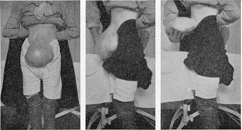 Den kliniske undersøkelse viste en fra epigastriet og navlestedet utgående, nedhengende hudpose. Omkretsen rundt basis var 31 cm., største omkrets 55 cm., lengden 28 cm., formen pæreform og vekten ca. 3 ½ kg. Den lot sig lett anbringe på en vekt når patienten stod opreist.