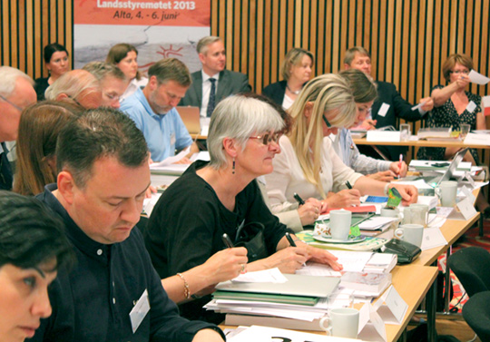 Årets landsstyremøte er uten valg på representanter. Her fra avstemmingen på landsstyremøtet i Alta. Foto Stein Runar Østigaard
