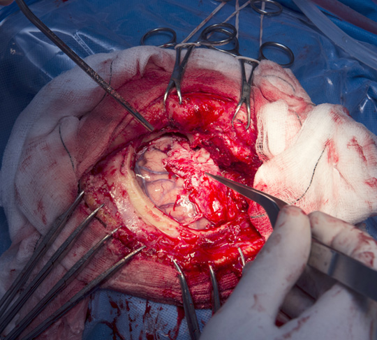 Iskemisk infarkt i a. cerebri media kan utvikle seg til malignt hjerneinfarkt med et hjerneødem som forskyver deler av hjernen nedover mot det store nakkehullet og truer vitale hjernestammefunksjoner, såkalt herniering. I en nylig publisert studie ble om lag 100 pasienter over 61 år med denne type hjerneslag randomisert til enten konservativ behandling eller nevrokirugi innen 48 timer fra symptomdebut (1) . Den konservative behandlingen besto i osmoterapi, som får hjernecellene til å krympe, eller til ventilasjonsstrategier som bedrer den intrakraniale plassen ved å få blodårene til å trekke seg sammen. Det nevrokirurgiske inngrepet besto av dekompressiv hemikraniektomi, dvs. en forbigående trykkavlastende fjerning av skalletaket med tilhørende duraplastikk.