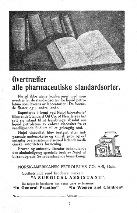 Markedsføringsloven gir klare regler for hva vi kan reklamere for, til hvem og på hvilken måte. Loven forbyr urimelig handelspraksis, og dette defineres som følger: «En handelspraksis er urimelig dersom den strider mot god forretningsskikk overfor forbrukere og er egnet til vesentlig å endre forbrukernes økonomiske atferd slik at de treffer beslutninger de ellers ikke ville ha truffet.» Loven blir brutt iblant, men vi er forhåpentligvis blitt generelt mer forsiktig med bastante påstander og superlativer i reklame enn man var i 1920-årene. Her følger noen få eksempler på annonser fra nr. 9/1925 som sto under vignetten Meddelelser fra den norske lægeforenings bureau og sekretariat (Tidsskr Nor Lægeforen 1925; 32: 3 – 16).