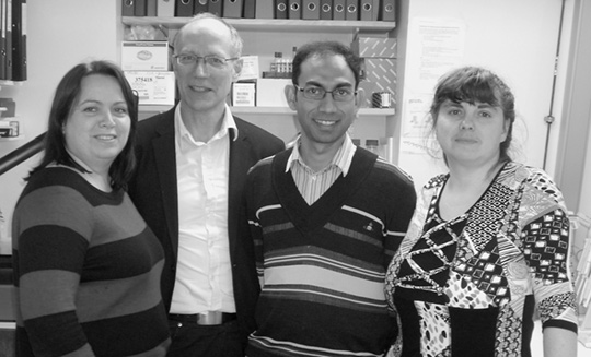 Fra venstre Mette Haugen, Christian Vedeler, Debarata Panja og Manja Schubert. En av forfatterne, Clive Bramham, var ikke til stede da bildet ble tatt. Foto: Privat
