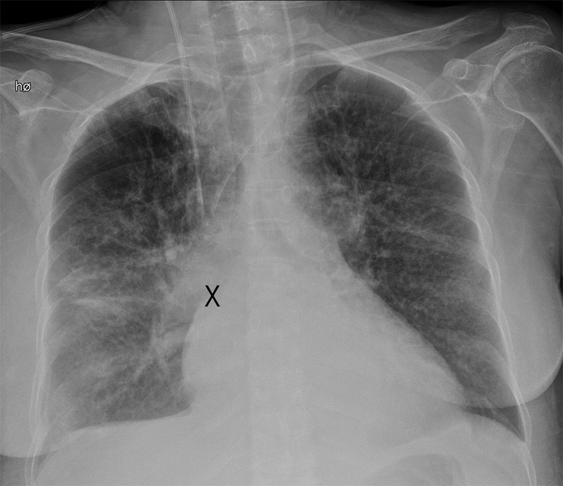 Partial anomalous pulmonary venous connection (PAPVC) is a rare congenital anomaly, with an incidence of 0.4 to 0.7 % (5, 6) . In PAPVC, one or more pulmonary veins are typically connected to the right atrium or vena cava instead of to the left atrium, allowing oxygenated blood to flow back to the right heart; the anomaly is thus analogous to a left-to-right shunt. Isolated PAPVC (with no atrial septal defect) is rare, and most often involves the upper right pulmonary vein draining into the superior vena cava. The anomaly in our patient, with involvement of the left pulmonary vein and drainage to the left brachiocephalic vein, is seen in approximately 3 % of those with PAPVC (5) , and is thus very rare. Symptoms are dependent on how many pulmonary veins drain into the right side of the heart. A single anomalous vein is rarely haemodynamically significant and therefore often gives no symptoms (5) , but nevertheless represents an increased strain on the right ventricle.