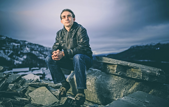 At han har en stor kjærlighet til hjemplassen sin er tydelig. På vei opp til fotografering i skiferbruddet litt utenfor byen peker han i alle retninger.
