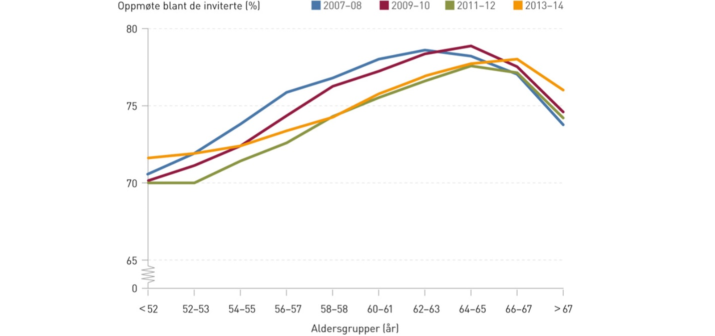Siden oppstart av programmet og frem til 2014 har 84 % av de inviterte kvinnene møtt minst én gang. Det er en sterk sammenheng mellom oppmøte ved foregående invitasjon og den aktuelle invitasjonen. Av kvinnene som møtte forrige gang de ble invitert, møtte 90 %, sammenlignet med 28 % av dem som ikke møtte gangen før.