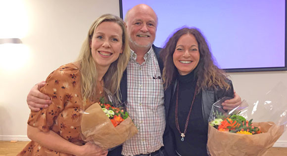 STORT OPPMØTE: Vinspaltist Ingvill Tennfjord og universitetslektor Kari Lossius, her med Hordaland legeforenings leder Gunnar Ramstad, trakk mange til møte om alkoholens gleder og farer. Foto: Privat