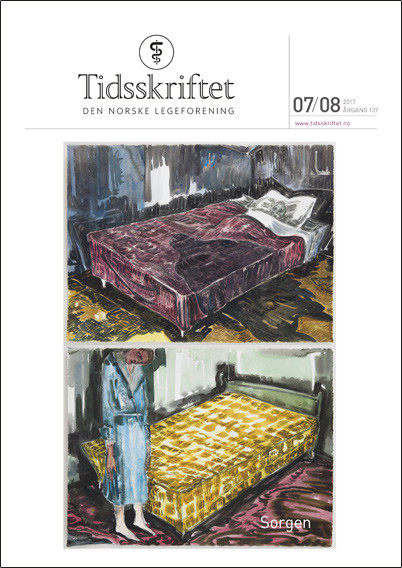 Forsidebildet FORSIDEN () sporsmal_grey_rgb Artikkel Illustrasjon © Vanessa Baird Mennesker skaper kategorier. Og kategorier skaper mennesker. Sorgen er gammel. Diagnosen er ny. Kommentarer ( 0 ) Dette kommentarfeltet modereres, men kommentarer blir ikke redaksjonelt behandlet ut over å sikre at de følger retningslinjer for vårt kommentarfelt. Denne artikkelen ble publisert for mer enn 12 måneder siden, og vi har derfor stengt for nye kommentarer. Publisert: 30. mars 2017 Utgave 7, 4. april 2017 Tidsskr Nor Legeforen 30. mars 2017 137 : 499 Publisert: 30. mars 2017 Utgave 7, 4. april 2017 Tidsskr Nor Legeforen 2017 137 : 499 PDF Får du ikke vist PDF-filen eller vil lagre filen, kan du høyreklikke på PDF-ikonet. Velg «Lagre mål/fil som..» og hent så opp PDF-filen i for eksempel Acrobat Reader. Skriv ut Anbefalte artikler