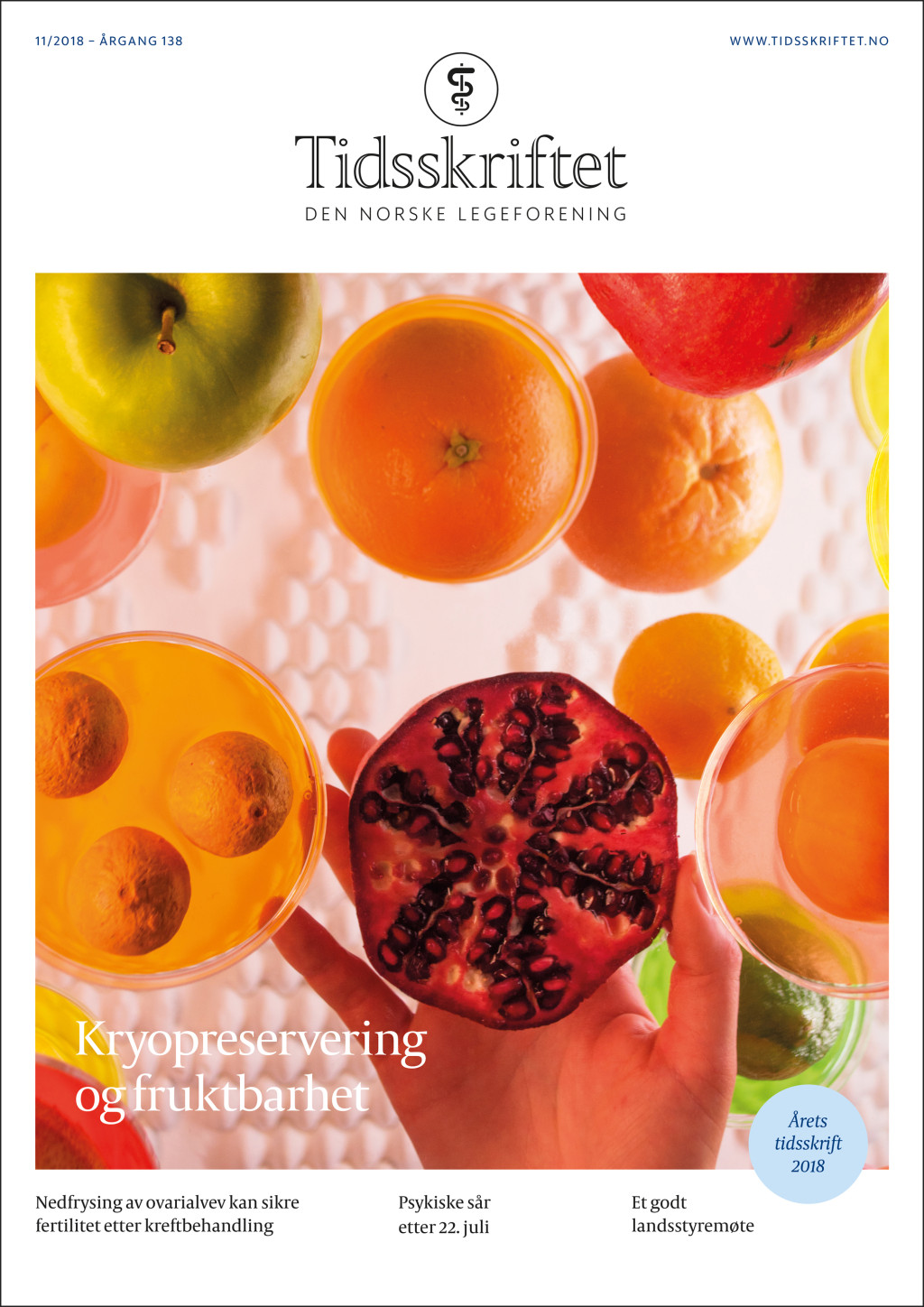 «Bildet ble til på en varm sommernatt i atelieret mitt i Brooklyn, og det hang en sødme, en eim av søt, oppskåren frukt i luften», sier John Orth, som har laget forsiden til denne utgaven av Tidsskriftet. Han er kunstner og musiker bosatt i New York og fullførte nylig sin Master of Fine Arts i skulptur ved Virginia Commonwealth University. «Mens jeg danderte et stilleben av granatepler, sitroner, lime, epler og appelsiner innimellom lag av glass, begynte modellen min og jeg å snakke om livene våre og sommeren som lå foran oss. Artikkelen, som er utgangspunkt for dette forsidebildet, hadde satt i gang en tankeprosess hos oss om våre egne familier, og hvorvidt våre fremtider ville inkludere barn eller ikke. Ettersom natten skred frem, og jeg fotograferte inn i de små timer, listet vi opp favorittfruktene våre, og med den optimismen som gjerne følger begynnelsen av en sommer, planla vi en rekke utflukter til havet.»