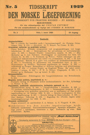 Den i «Tidsskriftet»s første nummer for i år bebudede forandring i «Tidsskriftets»s sprog er nu kommet i andet hefte. – Da jeg skulde til med dette nummer, husket jeg ikke på dette glædelige budskap – og begynte trøstig på første artikel. Men det var ikke mange linjer jeg var kommet, før den nye sprogdrakt virket således på mig, at artiklens faglige indhold blev mig aldeles fordærvet, jeg måtte simpelt hen – for denne gang ialfald – gi op. Istedenfor gav jeg mig – nolens volens – til blot at se igjennem artiklen fra dens orthografiske side – NB. Ikke dens sproglige. For det er vel ikke sprogets, men den såk. retskrivnings forandring redaktionens glade budskap går ut på – altså for så vidt et galt valgt uttryk for meddelelsen – heldigvis! Det skulde bare manglet at det virkelig var sproget: Nu går vi over til landsmål! Forresten, man vet sig jo aldrig tryg for hvad man kan risikere – men den dag melder ialfald jeg mig ut av Lægeforeningens resp. «Tidsskriftet» – hvis jeg da ikke forinden er død.