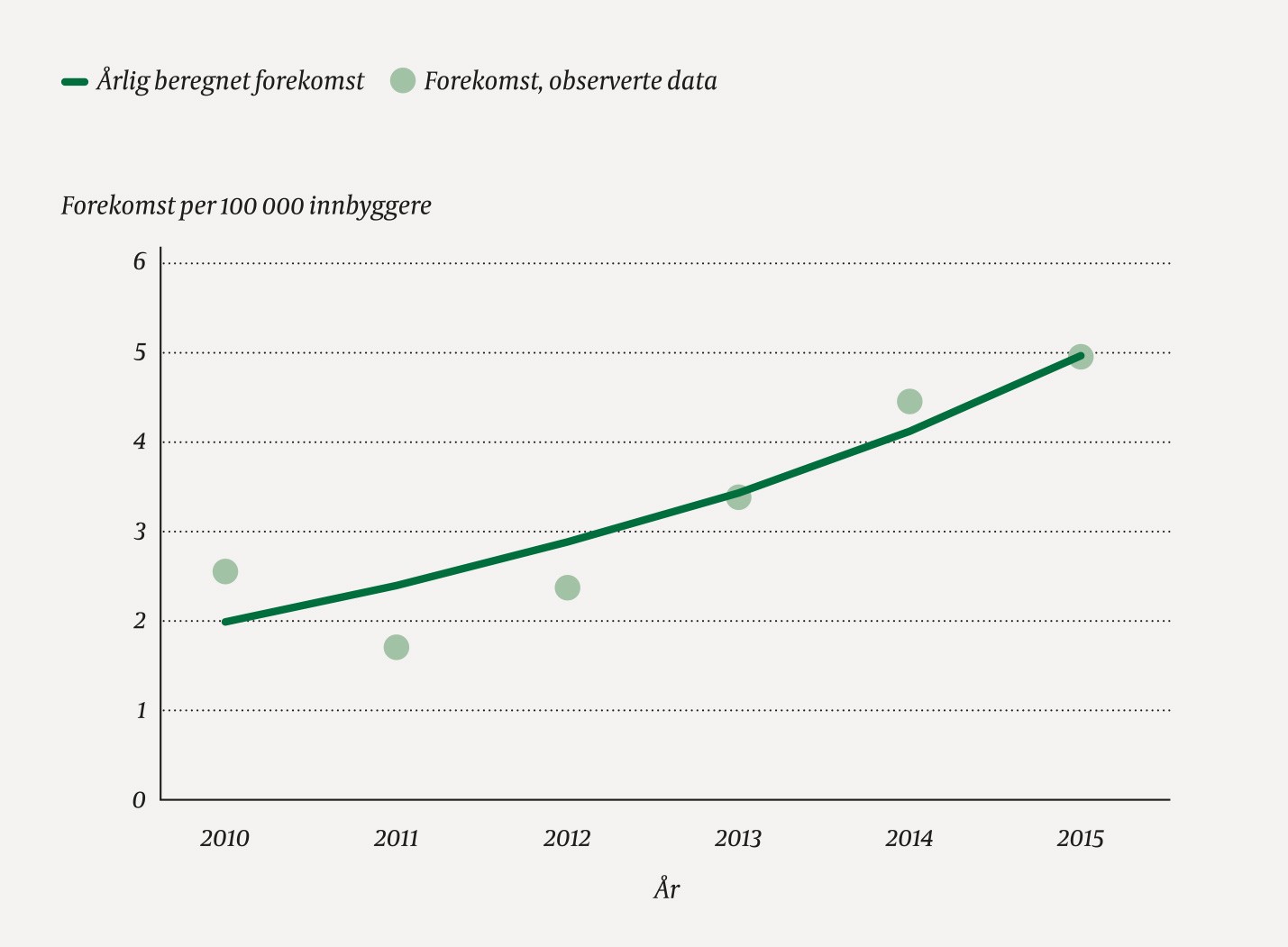 I perioden 2010–15 steg forekomsten med 19,9 % hvert år