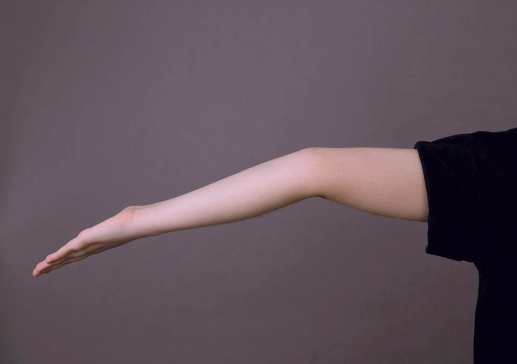 Hyperekstensjon albue er > 10° når armene er utstrakt maksimalt og håndflatene opp (bildet).