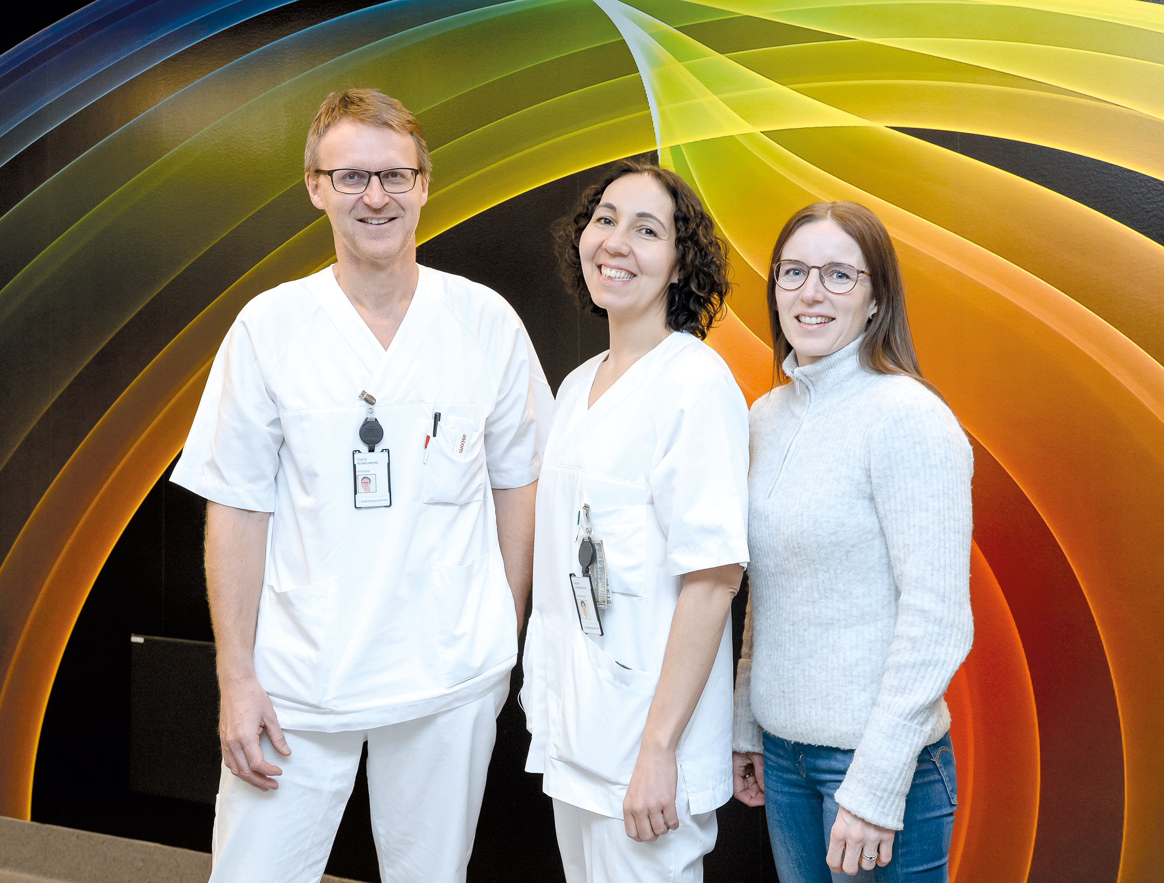 Fra venstre: Claus Klingenberg (barnelege), Dagny Hemmingsen (øre-nese-hals-lege), Camilla Mikalsen (audiograf). Foto: Per-Christian Johansen, Universitetssykehuset Nord-Norge.