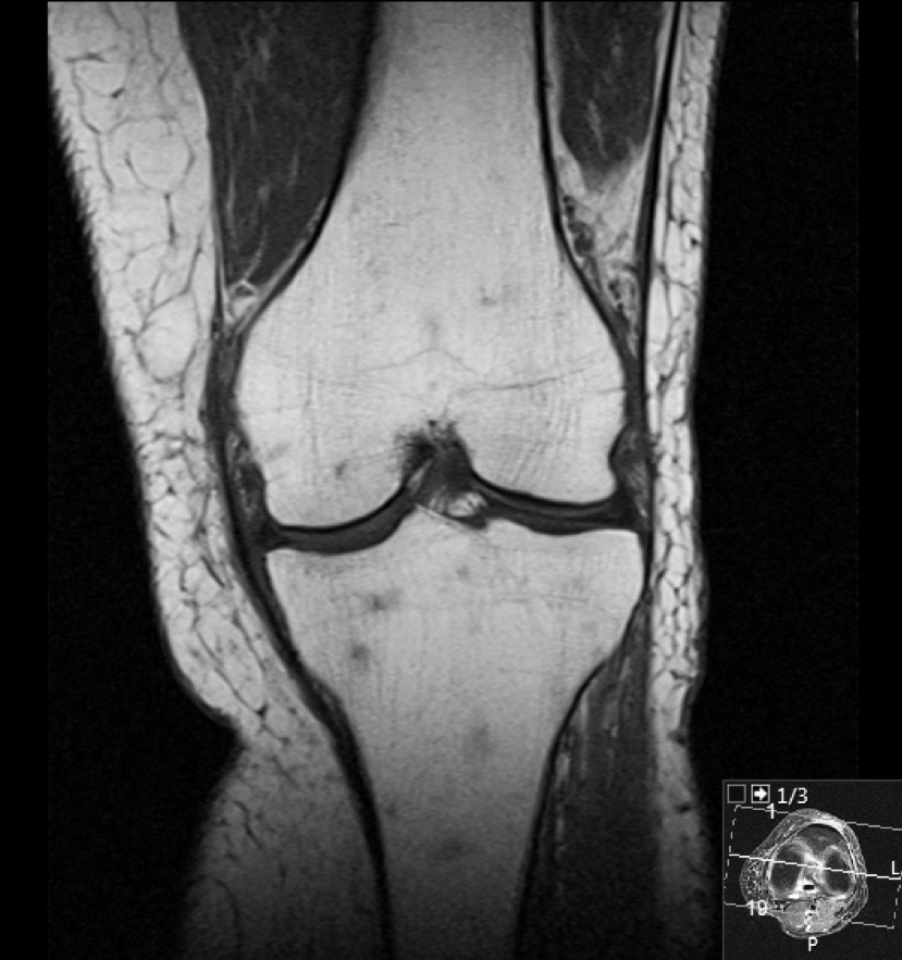 En tidligere frisk kvinne i 70-årene kom til MR-undersøkelse av venstre kne på grunn av et halvt år med smerter i kneet, spesielt ved kneling og trappegang. MR-undersøkelsen viste en degenerativ meniskruptur, som sannsynligvis kunne forklare pasientens symptomer. I tillegg var det flekkvise forandringer i benmargen.