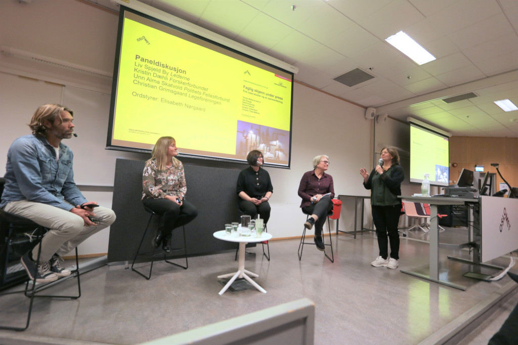 I etterkant av rapportfremleggelsen ble det avholdt en paneldebatt, med Liv Spjeld By fra Lederne, Unn Alma Skatvold fra Politiets Fellesforbund, Kristin Dæhli fra Forskerforbundet og Christian Grimsgaard fra Legeforeningen. Grimsgaard er ortoped og tillitsvalgt ved Oslo universitetssykehus og styremedlem i Overlegeforeningen.