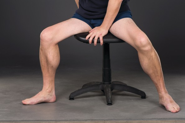 Både pseudohypertrofi og hypertrofi av leggmuskler har ved noen få anledninger blitt beskrevet ved spinal muskelatrofi (1, 2) . Pasienten er nå middelaldrende, og bildet demonstrerer at han har kraftige legger samt betydelig atrofi av lårmuskler. Han må bruke hendene for å komme seg opp fra sittende stilling (Gowers tegn) (3) . I motsetning til mer alvorlige former for spinal muskelatrofi er det ingen påvirkning av livslengde ved type 4.