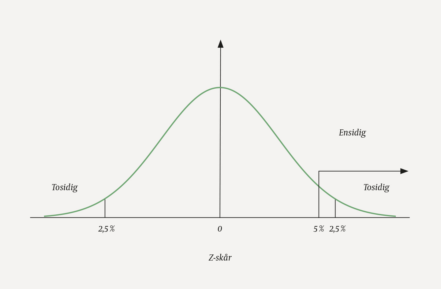 Det var en viss diskusjon om valg av ensidige versus tosidige tester i medisinsk statistikk rundt 1990-tallet (1, 2). Men en sak har alltid vært udiskutabel: Man må bestemme på forhånd om man skal bruke ensidig eller tosidig hypotesetest. Her har det antakelig vært syndet mye. Altman skrev i sin lærebok i 1991: «De få ensidige testene som jeg har sett rapportert i publiserte artikler har vanligvis gitt p-verdier mellom 0,025 og 0,05, slik at resultatet ville vært ikke-signifikant ved en tosidig test. Jeg tviler på at de fleste av disse var forhåndsplanlagt som ensidige tester» ((3), s. 171, egen oversettelse).
