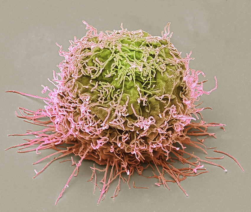 Leukemisk T-celle framstilt ved farget elektronmikrografisk skanning. Illustrasjon: Science Photo Library / NTB
