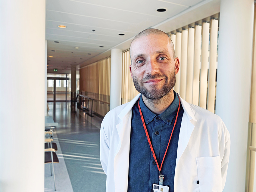 SYKEHUSFILOSOF: Andreas Aas Thorud er til stede når pasienter, pårørende og ansatte på sykehuset trenger en samtale. Foto: Sykehuset i Vestfold (SiV).