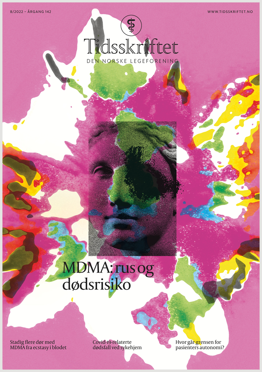 Illustrasjonen på forsiden er laget av Peder Bernhardt. Han er grafisk designer og illustratør, og jobber som seniordesigner i Tidsskriftet.