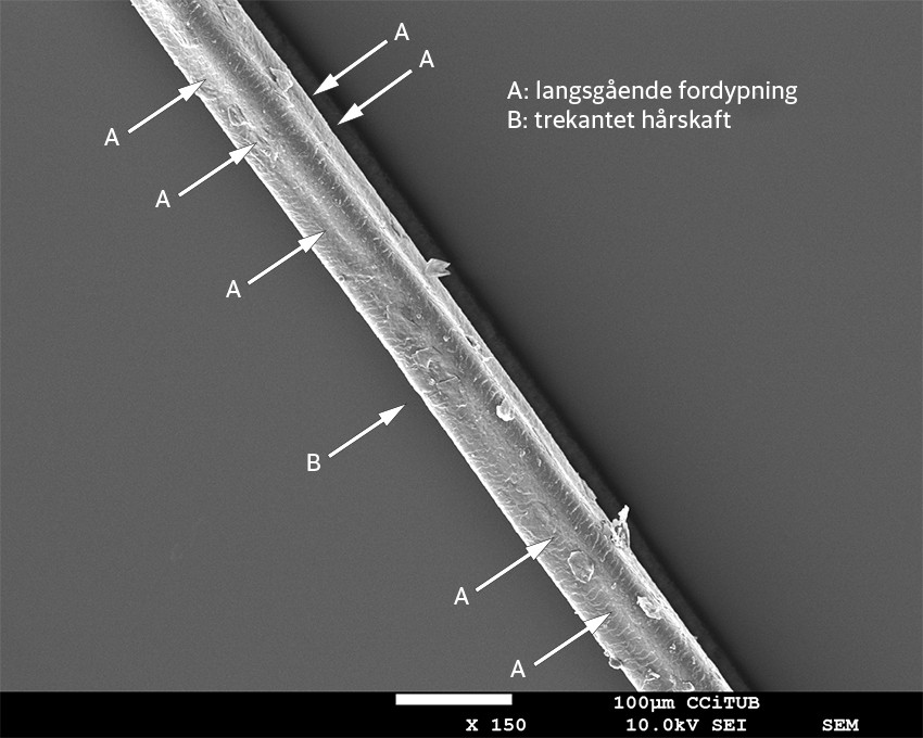 Bildet viser en gutt med et krusete og viltert hår. Elektronmikroskopiundersøkelse viser et trekantet hårstrå med kanallignende fordypning langs hårskaftet ved ugreelig hår-syndrom.