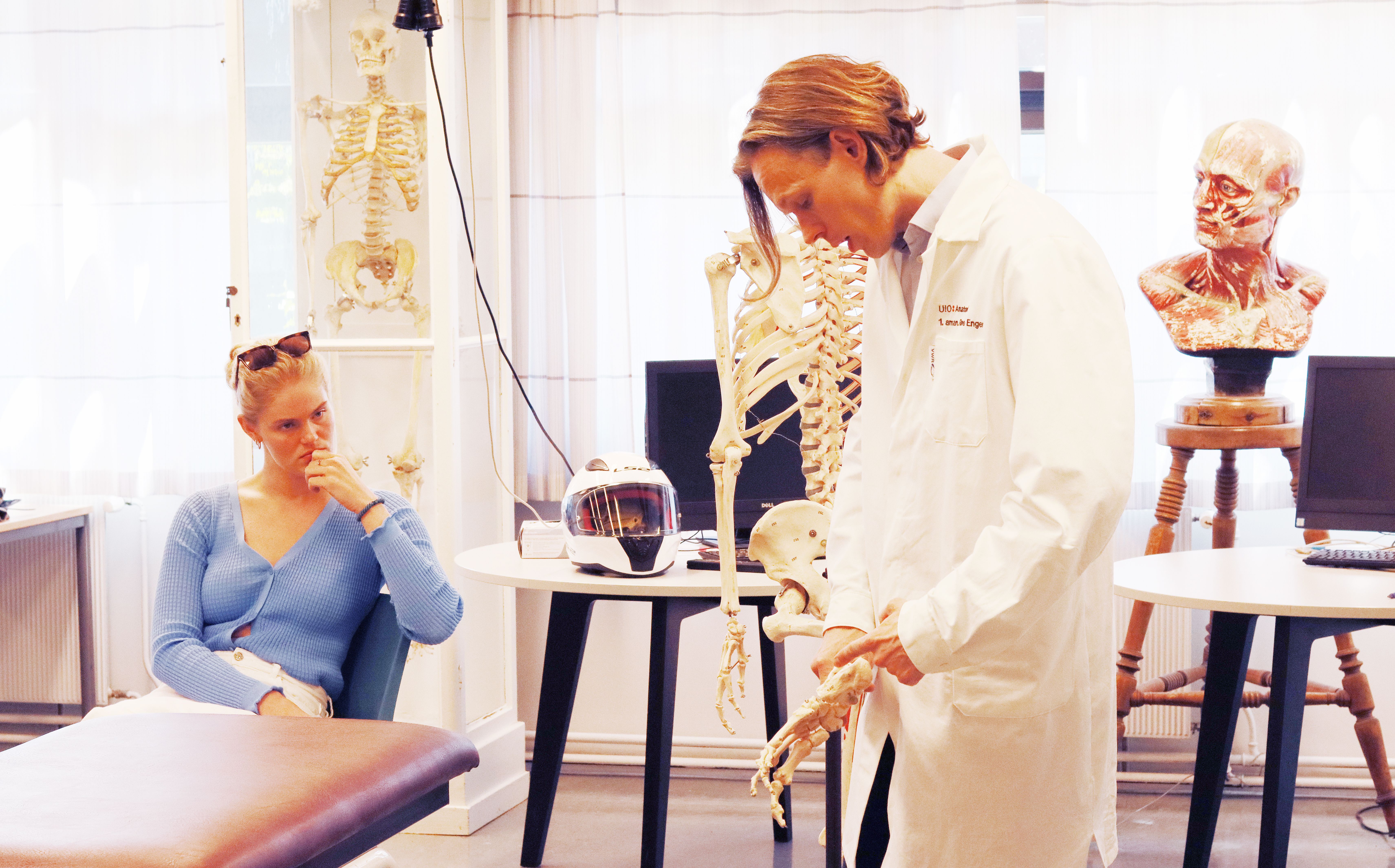 Rune Enger er førsteamanuensis ved Seksjon for anatomi, Avdeling for molekylærmedisin, Universitetet i Oslo og underviser i menneskelig makroskopisk og mikroskopisk anatomi for første- og andreårs medisinstudenter. I tillegg forsker han på gliaceller, søvn og demens. – Etter en dobbeltforelesning om skulderleddets anatomi holder jeg kurs i overflateanatomi og hvordan man undersøker ankel og fot.