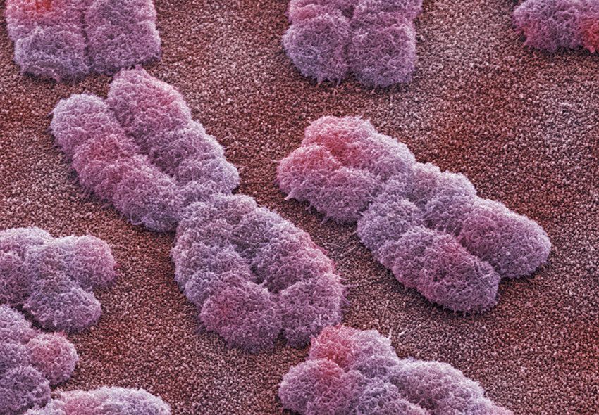Farget elektronmikrografi (SEM) av kromosomer hos menneske. Foto: Science Photo Library / NTB