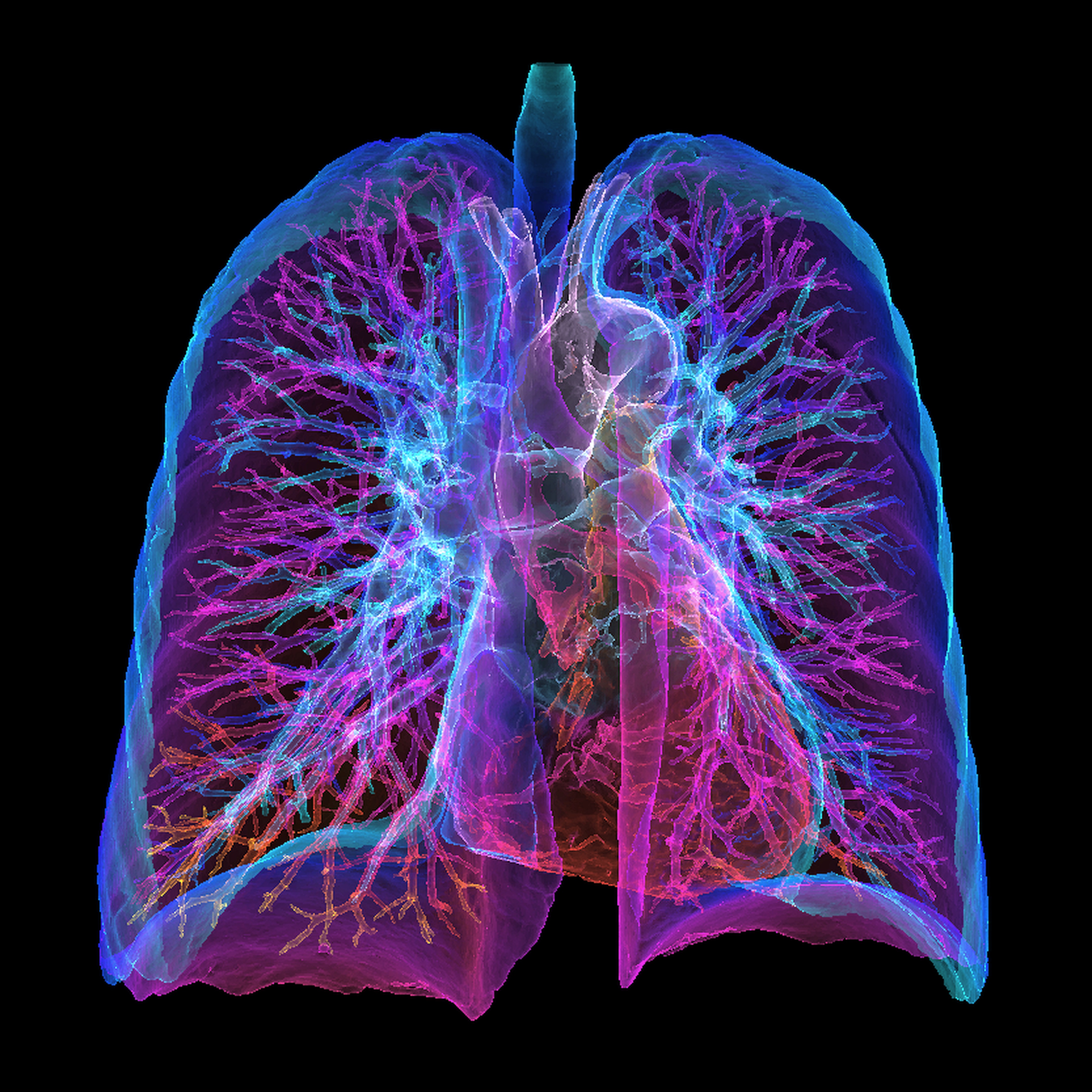 Hjerte og lunge 3D-fremstilt ved CT-fargeskanning (sett forfra). Illustrasjonsfoto: Science Photo Library / NTB