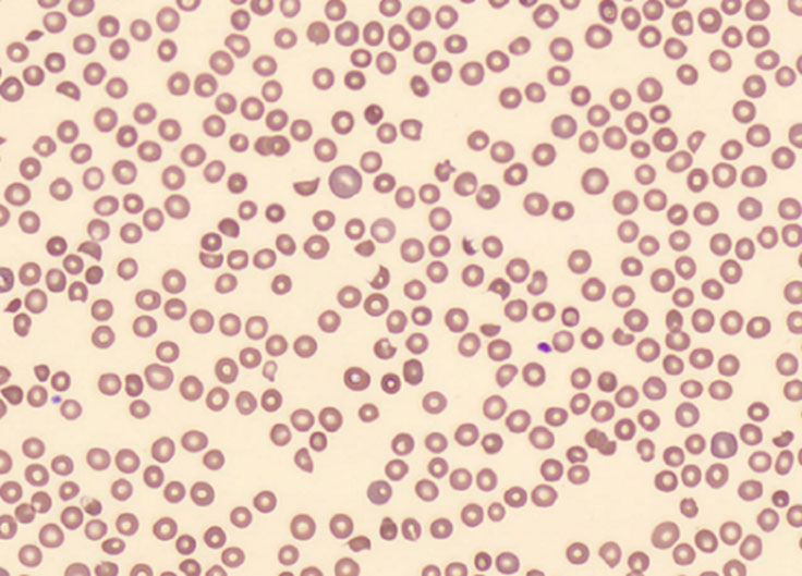 Hemolytisk anemi kan inndeles etter DAT-status. Antistoffer på erytrocyttenes overflate gir en positiv test og indikerer immunmediert hemolyse. Negativ test taler for mekanisk ødeleggelse av erytrocyttene (1). DAT-negativ (mekanisk) hemolyse med normale trombocytter er vanligvis ufarlig, og kan for eksempel skyldes kunstig hjerteklaff. Ved samtidig trombocytopeni må man imidlertid overveie en rekke alvorlige diagnoser, som samlet betegnes som trombotisk mikroangiopati. Her foregår trombosering i mikrosirkulasjonen med forbruk av blodplater, som gir trombocytopeni. Erytrocyttene fragmenteres når de passerer mikrotrombene og gir mekanisk hemolyse. Erytrocytter med synlige skader kalles schistocytter (2). Funn av mer enn 1 % schistocytter i blodutstryk er signifikant (figur 1). Trombotisk mikroangiopati kan raskt gi organdysfunksjon, avhengig av hvor mikrotrombene setter seg.