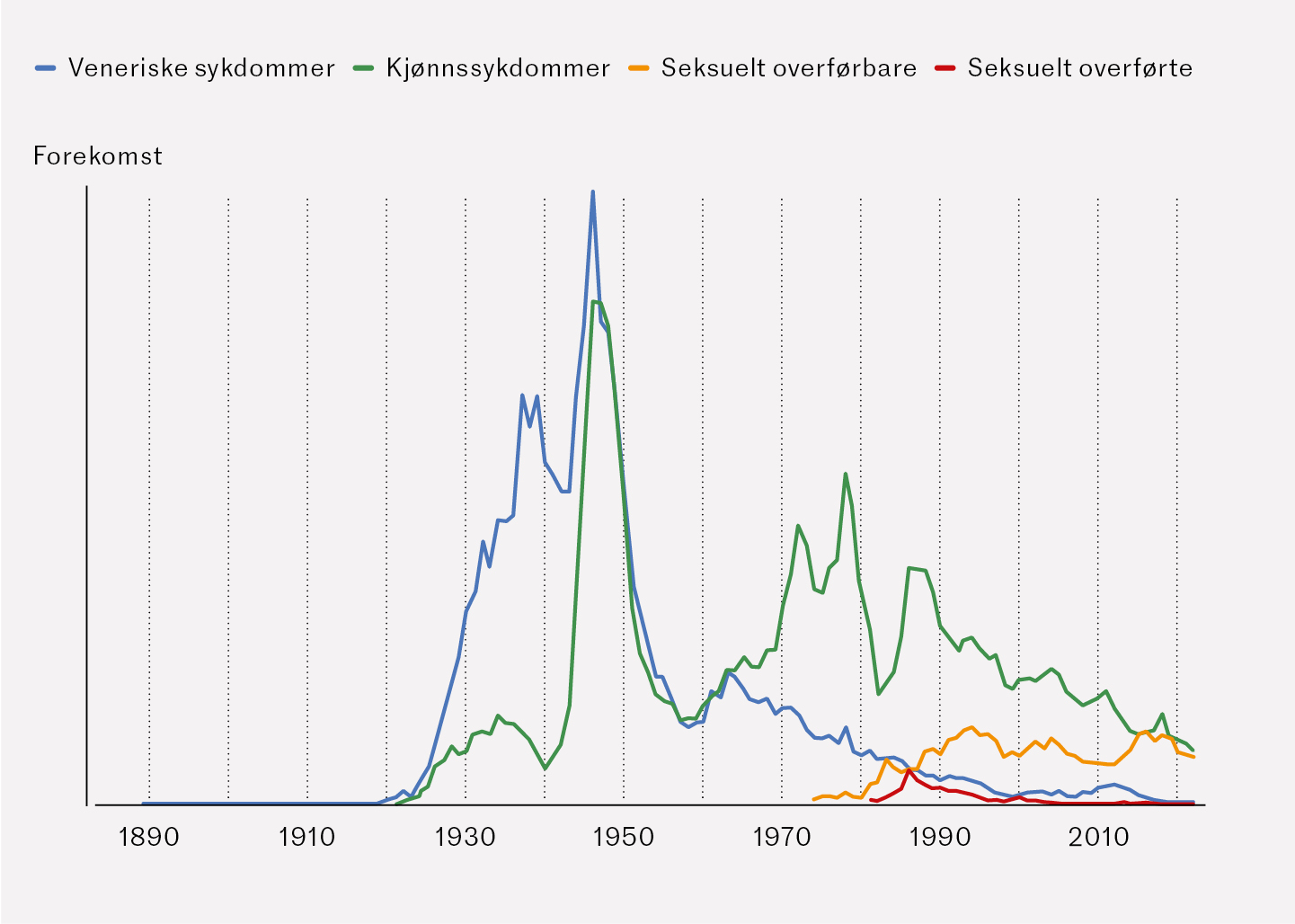 I 1947 kom Lov om åtgjerder mot kjønnssykdommer, som omfattet fem sykdommer: «syfilis, gonoré (dryppert), ulcus molle (bløt sjanker), lymfogranuloma inguinale (lymfopathia venerum) og granuloma venereum» (7) . I 1995 kom så Lov om vern mot smittsomme sykdommer, der verken veneriske sykdommer eller kjønnssykdommer nevnes eksplisitt (8) .