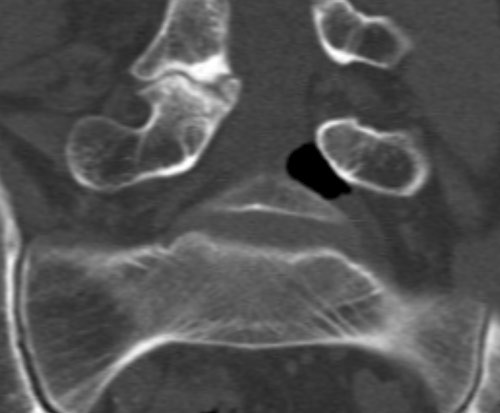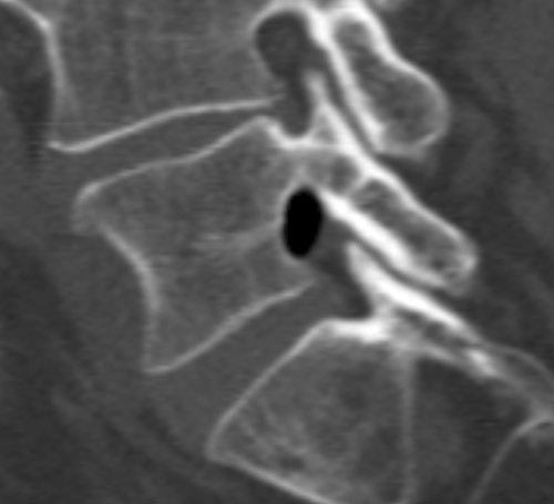 The presence of air in the intervertebral discs, known as the vacuum phenomenon, is a relatively common radiological finding in cases of degenerative changes in the lumbar spine. Cases are reported in the literature of gas in the spinal canal, in intervertebral foramina, in prolapsed tissue, epidurally and subarachnoidally, associated with the vacuum phenomenon (1) . It may also occur secondary to degeneration in facet joints and ligaments.