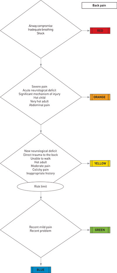 | Decision-making support | Clinical guidelines for each level of urgency | Flowcharts based on presenting complaint | Flowchart based on clinical presentation and expected resource use | List of presenting complaints and associated discriminators | Flowcharts based on presenting complaint and vital signs |