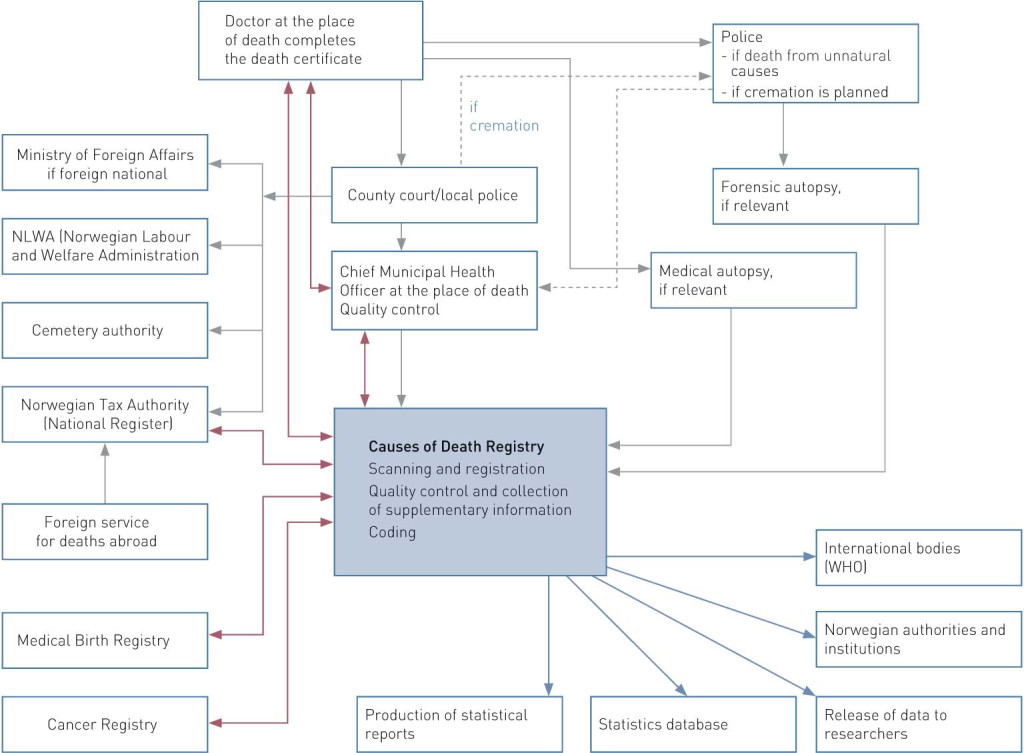 Dødsårsaksregisteret: viktig kilde til opplysning om helsetilstanden. Oslo: Statistisk sentralbyrå, 2004. www.ssb.no/helse/statistikker/dodsarsak/tilleggsinformasjon/dodsarsaksregisteret (28.8.2014).
