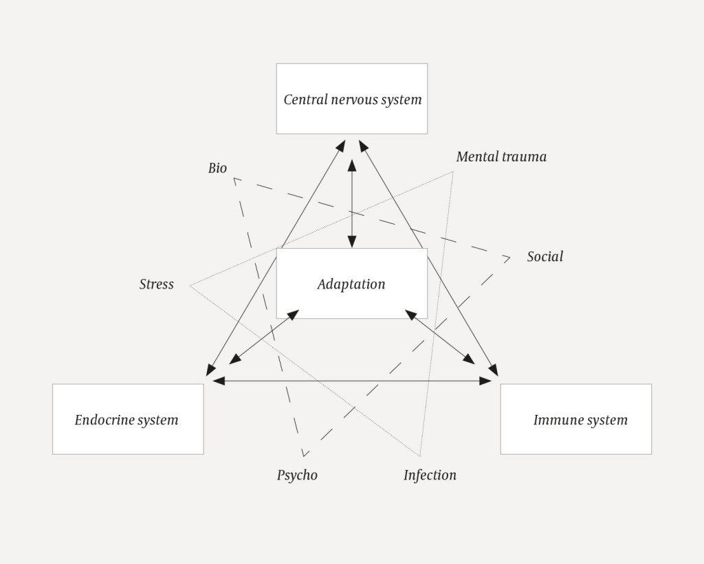 With regard to adaptive systems, this is an erroneous assumption. Adaptive systems surely develop from genetic structures that are constituted at the moment of conception, but their functional form is established only through the system's self-creating interaction with the environment. Health and illness may thus be realised in multiple ways – for example, monozygotic twins develop different adaptive systems, and as shown for the immune system, these differences may even increase over the course of life (11). Such differences reflect the changing realisation of subjectivity throughout life, and also profess that adaptive functionality should be regarded more as a relationship between the organism and its environment than as a property of the organism itself.