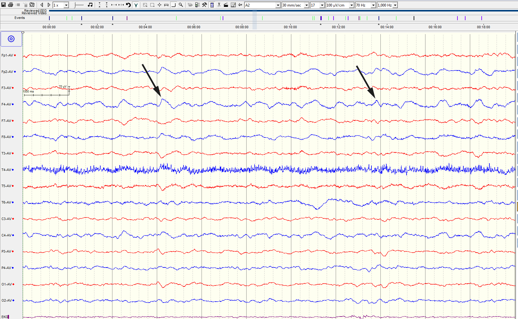 An EGG was performed the day after admission as part of the workup for suspected encephalitis (Figure 1).