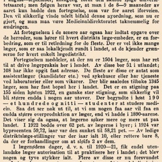 Er all den kunnskap som stappes ukritisk inn i medisinstudentene fra første dag, unødig? Eller vil helseproblemene i Norge kunne løses, bare legene får mer penger og makt? Se, det var blant temaene under det som for 15 år siden ble omtalt som en provoserende rundebordskonferanse. Anledningen var at Alment praktiserende lægers forening feiret sine første 50 år. I Tidsskriftets jubileumsnummer, som var gjennomillustrert av patolog Inge Morilds, fikk paneldebatten bred dekning. Blant de ni inviterte deltakerne var Berit Olsen, daværende fylkeslege i Finnmark: «Hovedproblemet er at det er et...