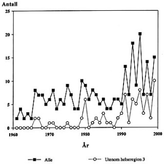 Gastroenteritter kan skyldes ulike smittestoffer i næringsmidler. Det kan være infeksjoner forårsaket av virus, bakterier og protozoer, og ”matforgiftning” forårsaket av toksiner produsert av smittestoffene. Hovedsymptomene er oppkast og diaré. De vanligste gastroenterittvirus er rotavirus, calicivirus og adenovirus, mens Salmonella, Campylobacter og Yersinia er de bakteriene som oftest registreres i Norge (1, 2). I 1997 ble det i Norge rapportert 1 393 tilfeller av gastroenteritt og sepsis forårsaket av Salmonella (3), og 1 494 tilfeller i 1998. I 1998 var det to dødsfall, og 36 pasienter (2...